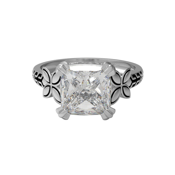 Moissanite Floral Engraved Solitaire Ring – Sterling Silver