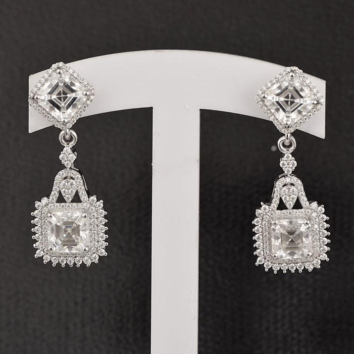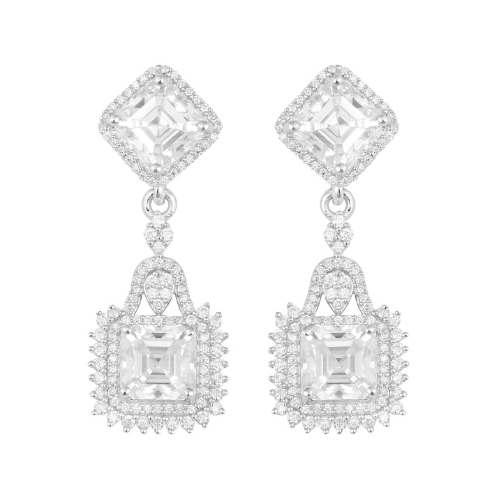 Moissanite Halo Asscher Earrings - Sterling Silver