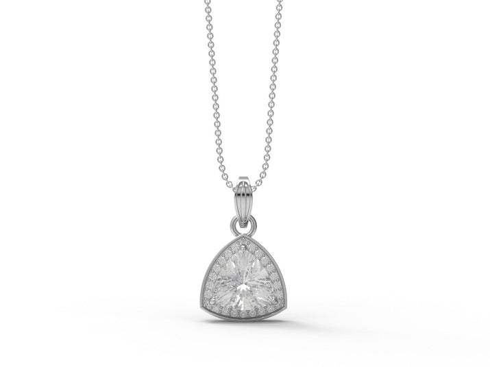 Moissanite Modern Trillion Halo Pendant - Sterling Silver
