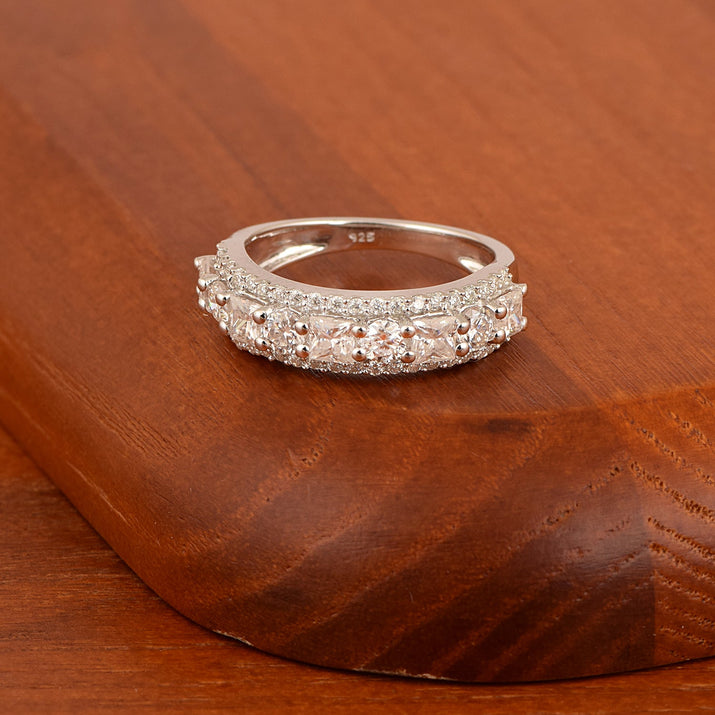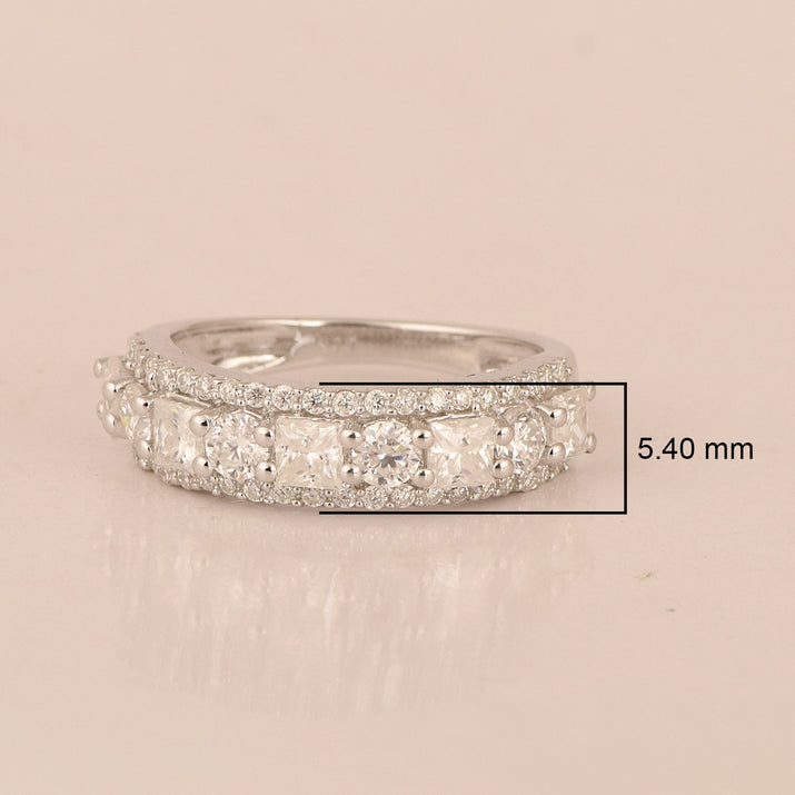 Moissanite Wide Cluster Band Ring – Sterling Silver